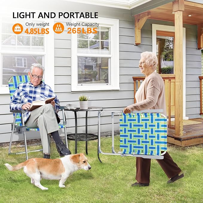 VINGLI Aluminum Patio Lawn Chairs Folding Set of 2 with Detachable Cup Holder, Webbed Beach Chair Folding Chair Outdoor Portable Camping Chair for Yard, Garden Blue alulawnchair