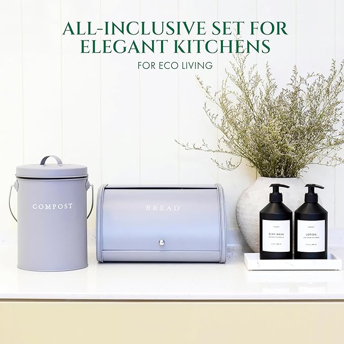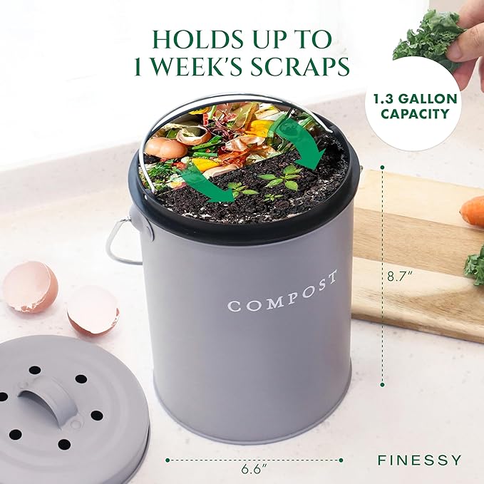 • BEGINNER FRIENDLY COMPOSTING: Ideal for both beginners and seasoned composters, this counter compost bin with lid easily stores kitchen scraps, making composting a seamless part of your lifestyle. The Future is Green, Start Today