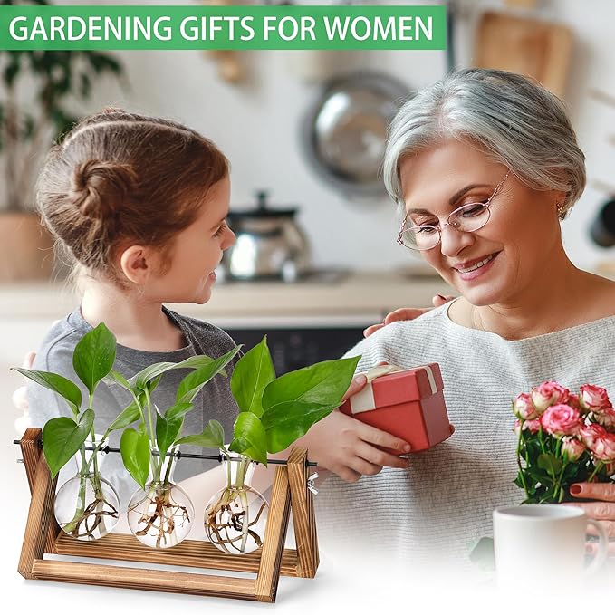 • 【Plants Propagation Stations】Vintage designed with mini bulb glass vase. Beautiful and eye-catching desk decor. Nice photo prop, prefect for indoor plants propagations and cuttings! Propagates your plant's babies in style, bulb glass container with plenty of room for plant's roots and all are visible for observing its growth condition. Great Gift for women, mom, friends and plant lovers.