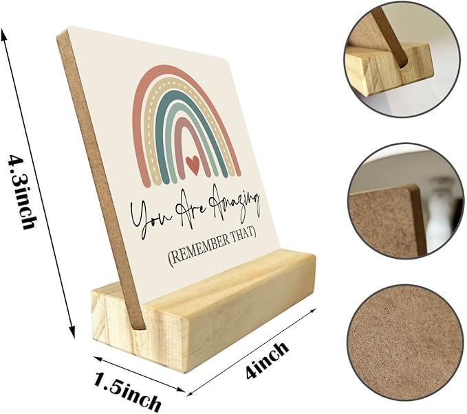 • Material and Dimension: The display board is made of sturdy MDF and comes with a wooden stand made of high quality pine wood; with emotional text and beautiful graphics, the plaque is tasteless, durable and long-lasting, not easy to fade and crack. Wooden sign 4 x 4.3 inches, the size is fit in your palm, easy to carry.