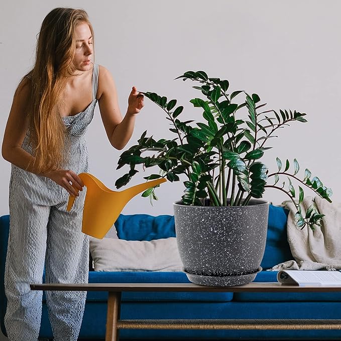 • [Sturdy PP material with Matte Finishing Exterior] There large plastic planters for indoor plants are made of 5.5mm thickness plastic for 12 inch pot, and 5mm for 9~10 inch pot. Be safety placed on the windowsill, home and office. Plastic pots are ligthweight, they tend to retain moisture, so you will water less frequently. And Easy to wash and reuse.