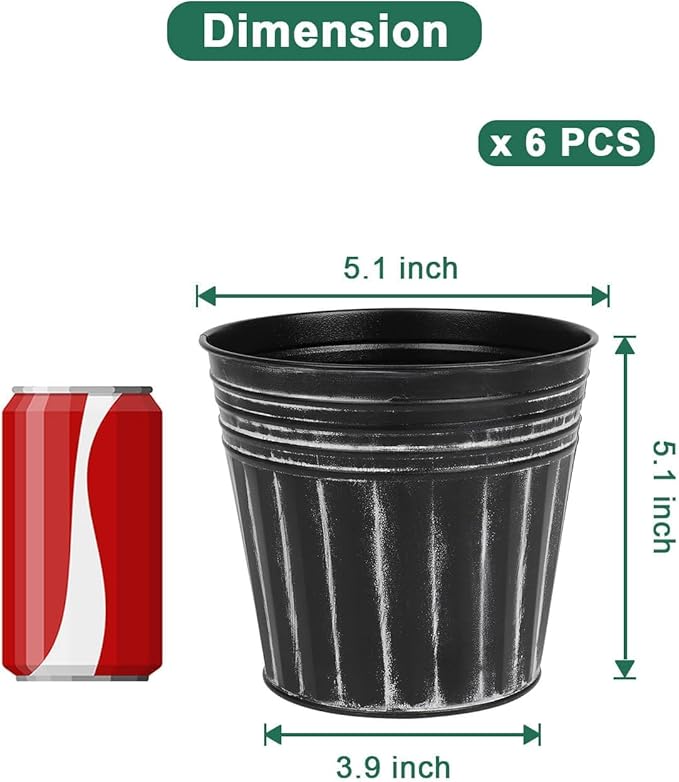 • 【Size of Metal Pots】There are 6pcs metal planters in a package, Topper opening diameter 5.1 inch, bottom diameter 3.9 inch, barrel high 5.1 inch.