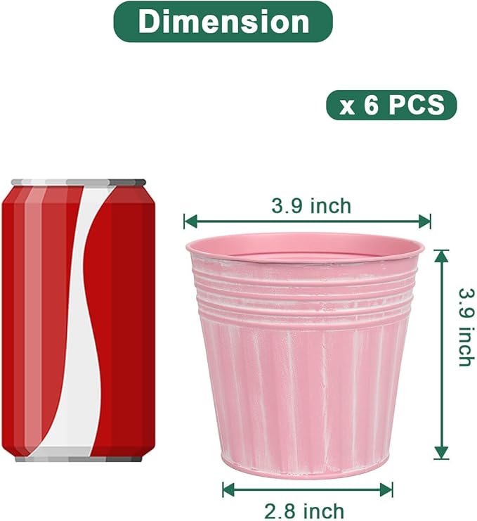 • 【Size of Metal Pots】There are 6pcs metal planters in a package, Topper opening diameter 3.9 inch, bottom diameter 2.8 inch, barrel high 3.9 inch.