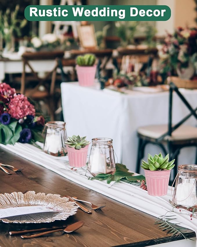 vensovo 4 Inches Pink Metal Rustic Flower Pots - 6 Pcs Small Galvanized Planters with Drainage Hole and Rubber Plug, Rustproof Tin Bucket Plant Pot Farmhouse Vintage Style for Decor