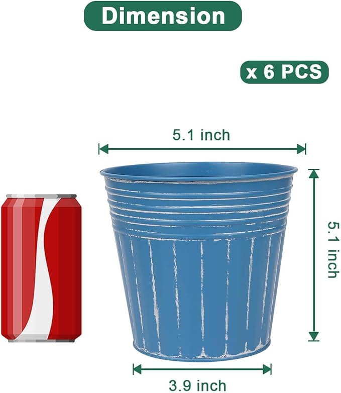 • 【Size of Metal Pots】There are 6pcs metal planters in a package, Topper opening diameter 5.1 inch, bottom diameter 3.9 inch, barrel high 5.1 inch.