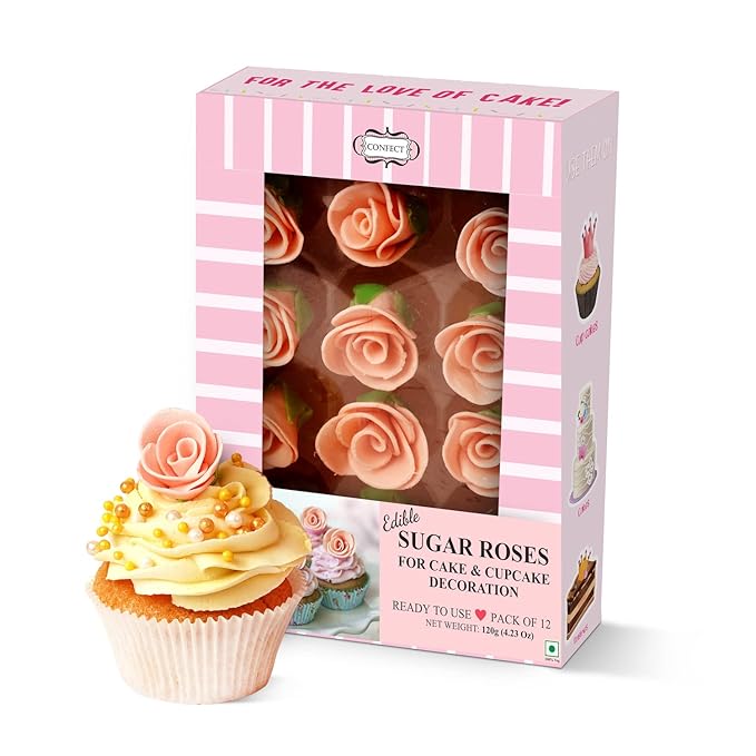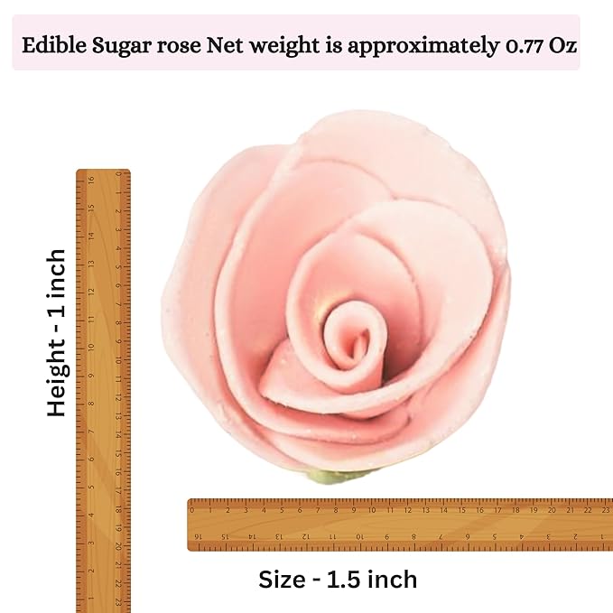 • Contains no floral wires making them safe to consume. Each pack contain 12 sugar roses – approximately 1.5 inches in size, weighing 0.77 Oz each
