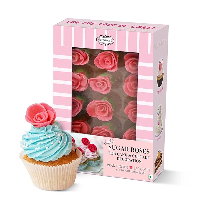 • Contains no floral wires making them safe to consume. Each pack contain 12 sugar Flowers – approximately 1.5 inches in size, weighing 0.77 Oz each