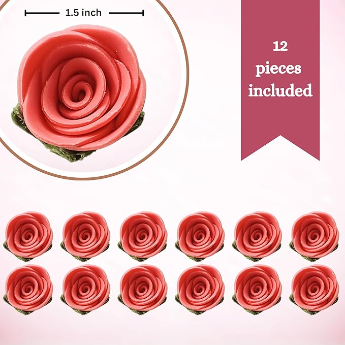 • Pack of 12 Roses – Conveniently packed for multiple uses or for decorating large cakes and dessert platters.