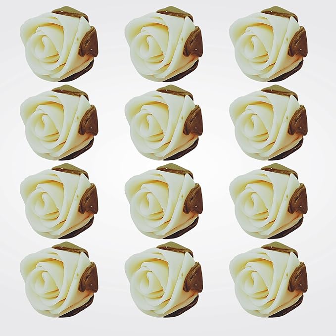 • Contains no floral wires making them safe to consume. Each pack contain 12 sugar roses – approximately 1.5 inches in size, weighing 0.77 Oz each