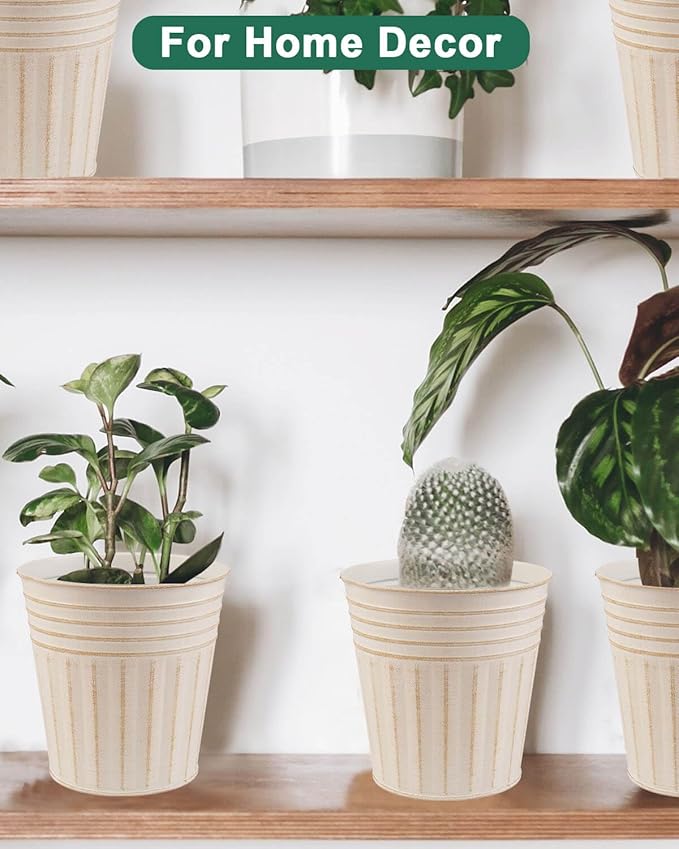 • 【Size of Metal Pots】There are 6pcs beige metal planters in a package, Topper opening diameter 5.9 inch, bottom diameter 4.3 inch, barrel high 5.9 inch.