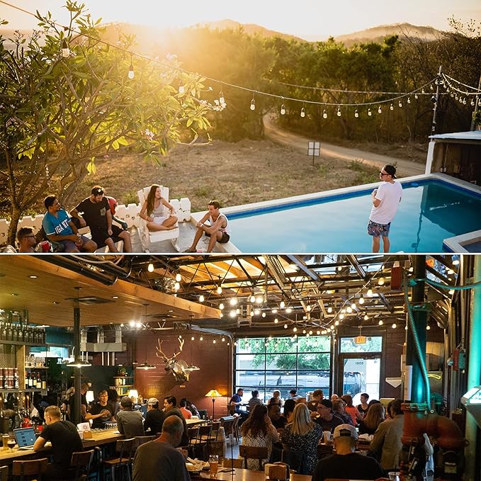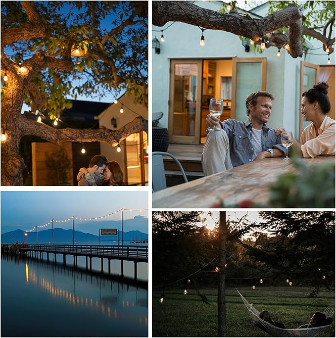 • 【Safety and durable】 UL certified outdoor light string is built with weatherproof technology, which can withstand extreme temperatures, rain, wind, and damp climates. Safe and durable electric dimmable string light either with an E26 socket base and a built in spare fuse for easy replacement.