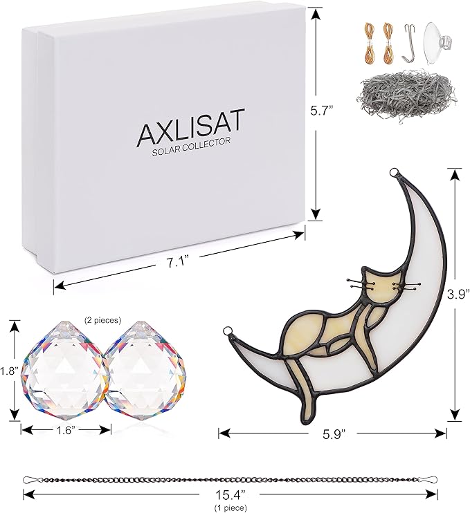 • CAT MEMORIAL GIFTS: One colored glass cat, one cat pendant, two crystal balls, two cat mom gifts for gold hanging threads, one transparent suction cup, and decorations of raffia grass. They are placed in a custom gift box, exquisite and artistic, and can be given to your loved ones.