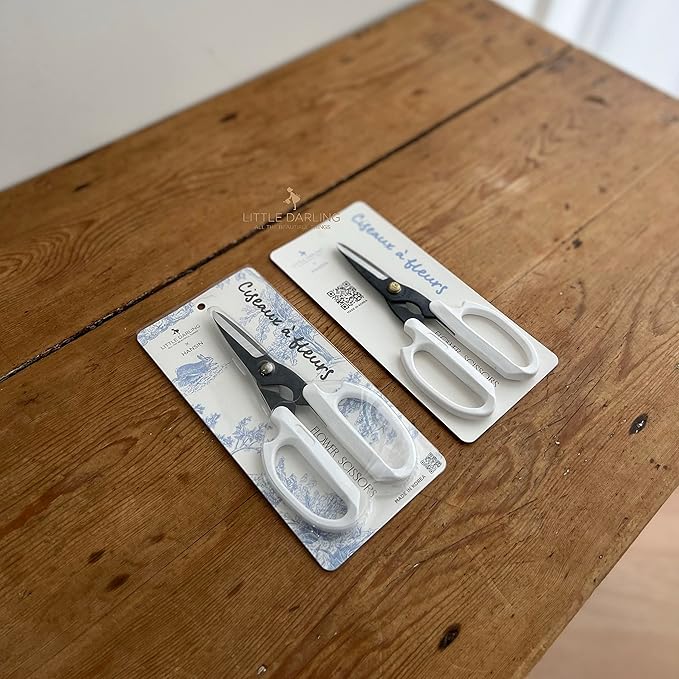 LITTLE DARLING White Korean Flower Scissors Pruning Shear Gardening Trimming Sharp Blade Floral Shears With Non-Slip Comfortable Grip