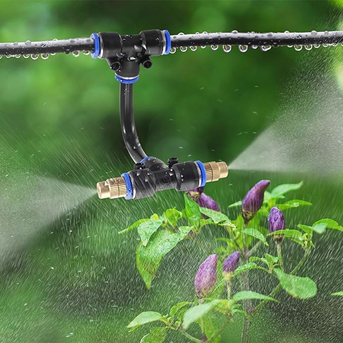 • 【Brass Misting Nozzles Tee with 12inch Built in Hose】: Made of premium brass, Mornajina Brass Misting Nozzles Tee with 12inch built in hose can be bent and fixed at 360 degrees, very convenient to adjust the place to be sprayed and specify the direction. And these misting nozzle tee thread sprayer with replacement heads equipped with leak proof self sealing o ring, no tape or sealant is required.