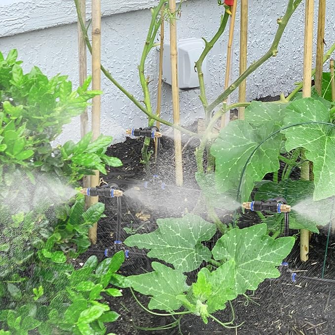 • 【Easy to Install】: Easy to install and disassemble. Tubes can be easily inserted or pulled out by pressing the blue snap button. And by twisting nozzle, you can adjust the water volume. Atomizing Misting Sprayer outer diameter: 0.35inch, orifice diameter: 1.1mm (0.043").