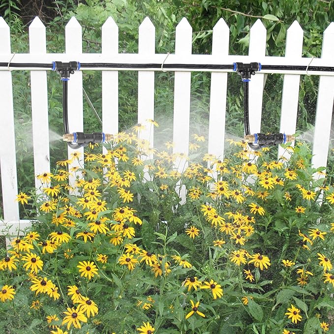 • 【Misting Range】: 30-50 inch, cools the surrounding air temperatures up to 20 degrees. These misting nozzles tee can be connected to most 0.32inch/8mm water hose, nylon tube or polyurethane tubes to make fan misting system, mist cooling system, plant watering system and patio misting system. The water pressure is recommended to be above 2kg/mpa, water volume is 24L per hour, the water volume is 72L per hour. The longer the hose length, the greater the water pressure required.