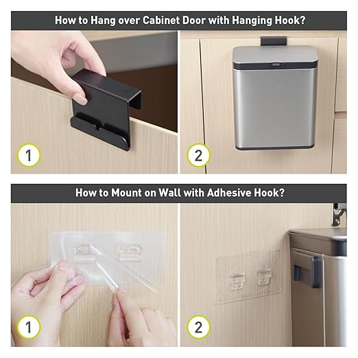 • 【Triple Placement Options】Whether you hang it over cabinet doors, mount it on walls, or simply place it on countertops, this trash can is designed for adaptability to fit your space seamlessly.