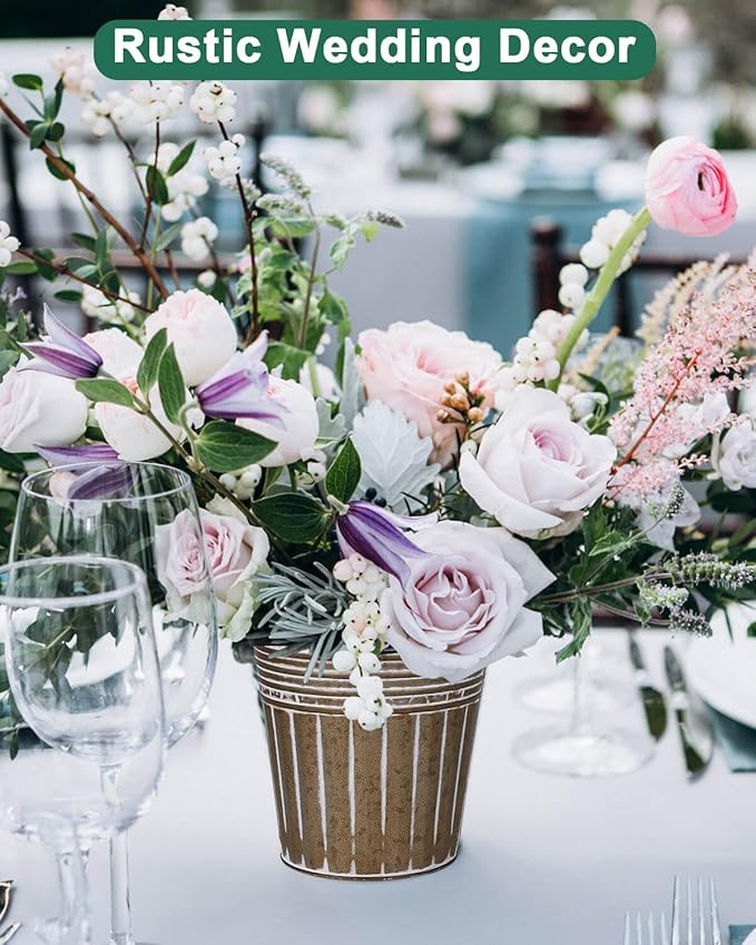 • 【Great for More Scenes】Metal bucket flower pot with rustic coating will not fade and crack, suits for outdoor & indoor, windowsill, living room, kitchen, balcony, garden and more. Used for succulents, herbs or other flowers. Rustic and vintage finish great for decorating your home or office, also used as a gift for landscape design lovers
