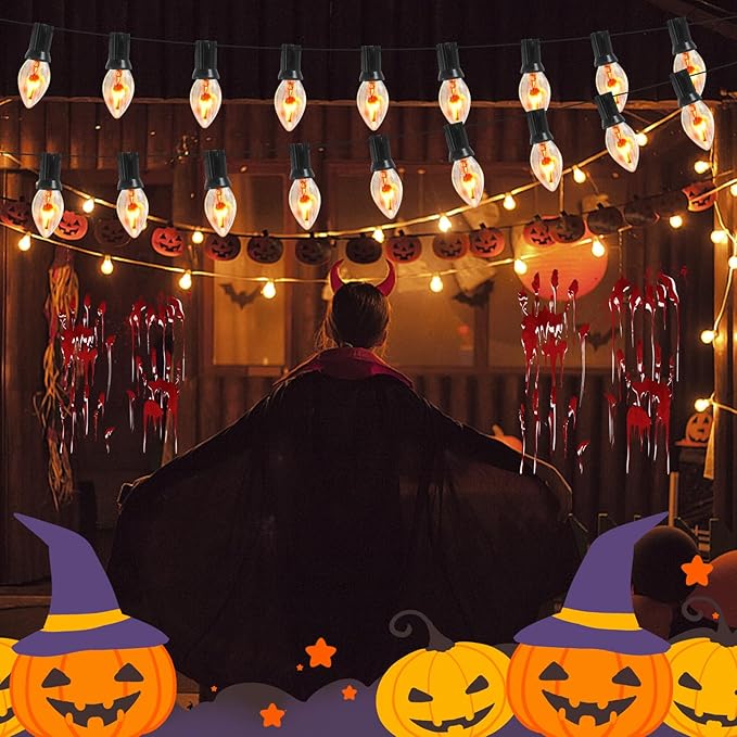 • UL Listed: Vintage Christmas Lights UL Listed for indoor and outdoor use. halloween decorations outdoor string lights is the perfect lighting decor, flicker flame string lights perfer for christmas halloween roofline backyard house garden patio wedding, create a spine-tingling atmosphere with flicker flame halloween string lights
