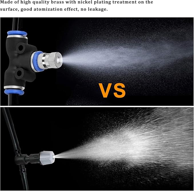 • Energy Saving & Environmental Protection: The water misting nozzles can directly use the tap water spray cooling, no electricity consumption, no energy consumption, saving you more resources, be an environmentalist