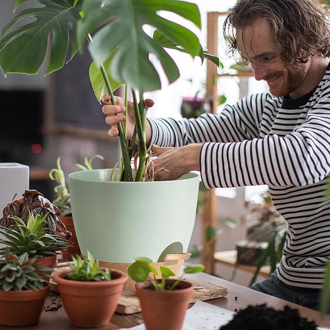 • These plant pots feature multiple drainage holes at the bottom, creating an efficient air circulation system for the plant roots. This greatly reduces the risk of root rot, especially when plants are in a confined environment. The integrated watering lip makes it easy to replenish water without disturbing the plant itself, while also providing a convenient way to monitor the water level.
