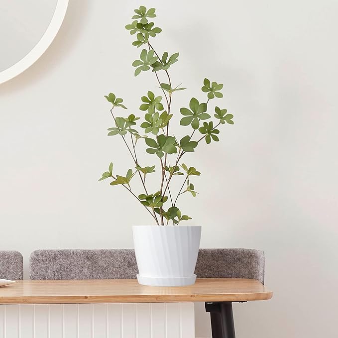 • MODERN MINIMALIST DESIGN - White matte finishing surface plant pot with strip pattern and round shape design bringing out a modern minimalistic styled and elegant. And bottom surface has feet like lines to prevent from sliding. This plastic planter will bring a modern and stylish visual. Great for all house plants.