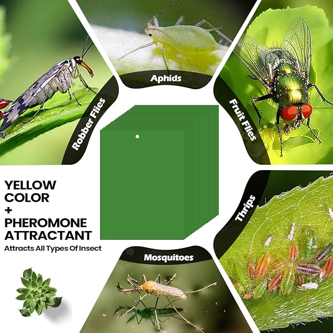 • Double Sided Stickiness: our green sticky traps are designed to be double sided, widely catch the most pests, includes white flies, leaf miners, fungus gnats, shore flies, midges, mosquitoes, and other flying insects, you can place them in the garden, lawn, yard, next to the trash can and so on