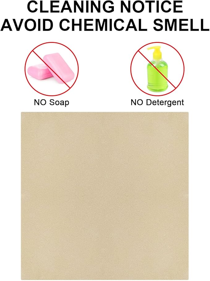 • Easy to clean! This pizza stone itself does not need to be soaked with dish soap, and the stains on it can be washed clean with a sponge dampened with water. The grease on it is naturally absorbed by the baking stone itself.