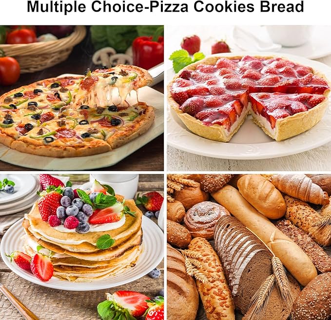 • Package includes 1-pack pizza stone; Material: All natural Cordierite; Size: 13.2" x 13.2" x 0.4". Solid piece that cooks evenly. Can be used in home kitchens, family gatherings and parties. Can be used to bake bread, pizza, pies, cookies, and pastries, etc.