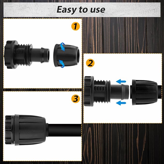 • Easy to Install: No complex steps or tools required. Just push the tube firmly onto the barb and tighten the nut. With good sealing, it will not leak, providing effective and lasting connections for your irrigation system.