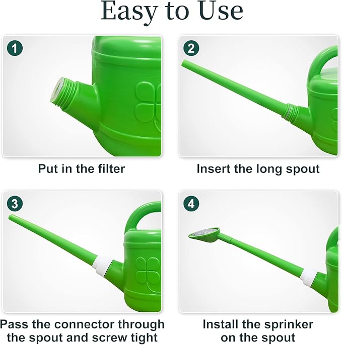 • [PRECISE WATERING, WATERING FLOWERS WITHOUT WORRY]-Plant watering can has a removable long spout, easy to carry and store, when installing, pass the connector through the spout and screw tight, seals well with no leak. Long spout watering can easy to reach distant plants, watering easily without bending over or tilting it too much, it easy to control the overall water flow, directing water exactly where it is needed, allowing every part of the plant to fully absorb the water.