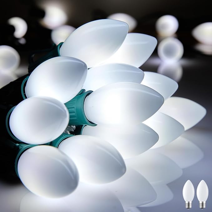 • Old Fashioned Appearance: This traditional C9 LED plastic bulb of Christmas lights is made of inner abrasive finish, creating a misty and retro pure white lighting effect, harmonious and comfortable atmosphere, lighting up your life and creating exclusive memories for you