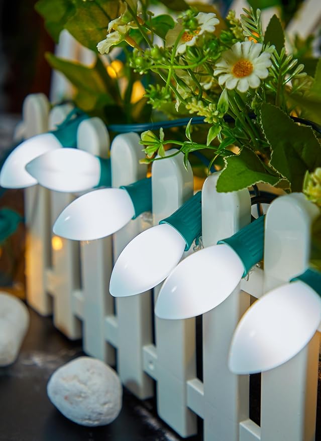 • Applicable to a Variety of Occasions: C9 LED Christmas lights outdoor are suitable for indoor and outdoor daily and holiday decorative accessories, ideal for commercial grade buildings, cafe, bistro, porch, patio, gazebo, garden, backyard and many other decorative options, such as Christmas, wedding, party, camping and other festive and leisure activities necessary for decoration