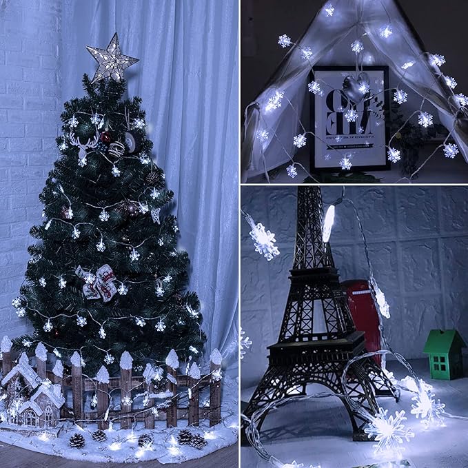 • 【Romantic Snowflake Christmas Lights】Transform any setting into a winter wonderland with our beautiful 39 ft long string of 100 LED warm white snowflake lights. Ideal for decorating bedrooms, courtyards, terraces, balconies, BBQ areas, tents, and more;