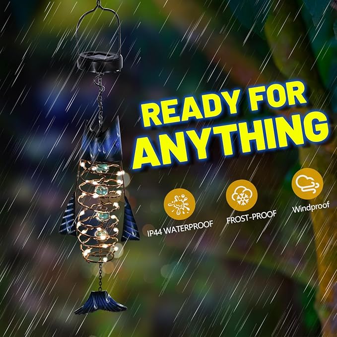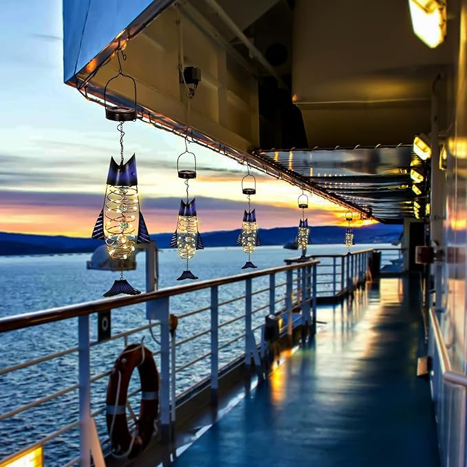• 【Solar Lights for Hanging Outside】- These solar fish lights emit a warm, welcoming ambiance that makes them perfect for holiday decor, garden security lighting, front door or hallway lighting, and courtyard party decorations. They're ideal for decorating yards, gardens, patios, lake houses, lawns, porches, gates, balconies, and beaches