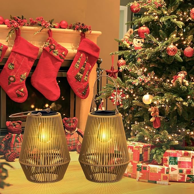 • 𝐃𝐞𝐜𝐨𝐫𝐚𝐭𝐢𝐯𝐞 𝐑𝐚𝐭𝐭𝐚𝐧 𝐋𝐚𝐧𝐭𝐞𝐫𝐧:Solar Lanterns Outdoor are made of rattan, purely handmade. The lights emit warm light and add a sense of ambiance to your yard. MAINLY FOR DECORATION, NOT FOR ILLUMINATION