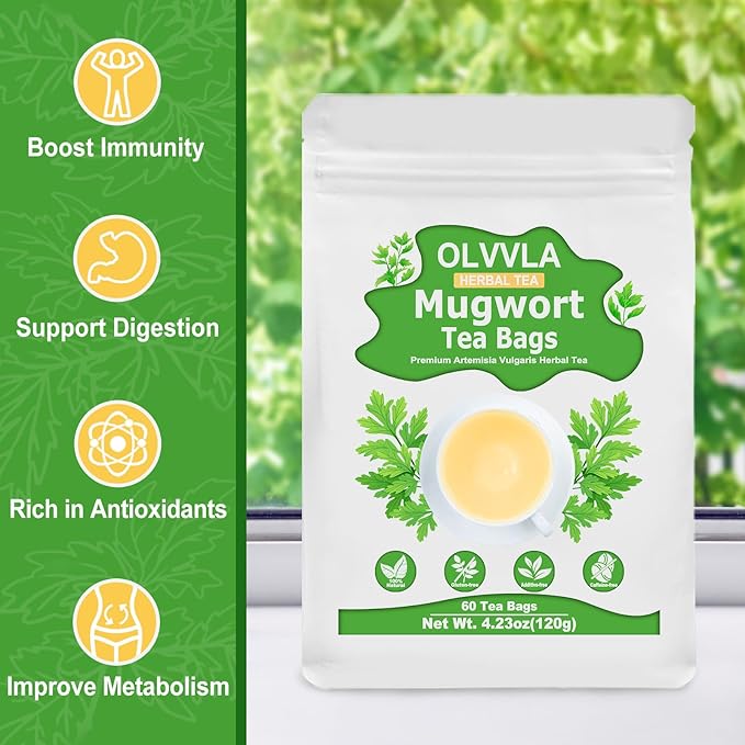Olvvla - Premium Mugwort Tea - 2g X 60 Count - 100% Pure Natural Mugwort Tea Bag - Caffeine-free - Mugwort Herb Dried - Rich in Antioxidants & Support Digestion