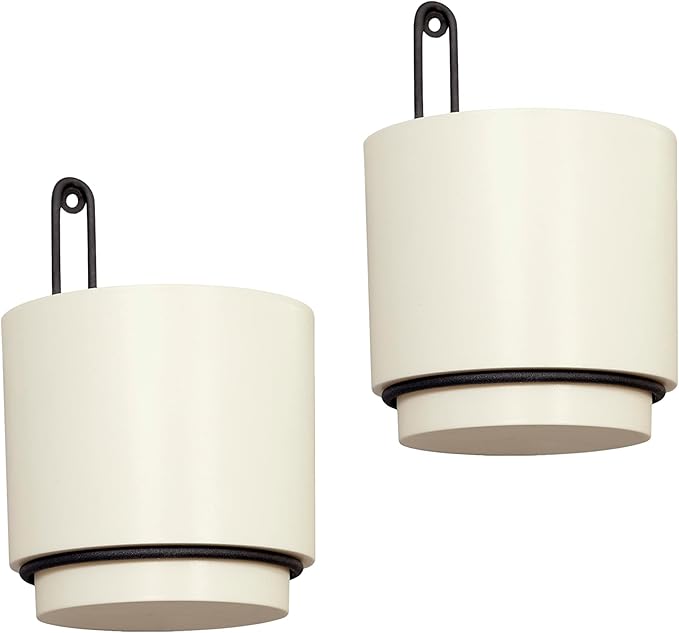 Wall Mounted Hanging Planter Vase & Geometric Wall Decor Polypropylene Container - Dia.5.91" - Sylinder Shape, White, Set of 2