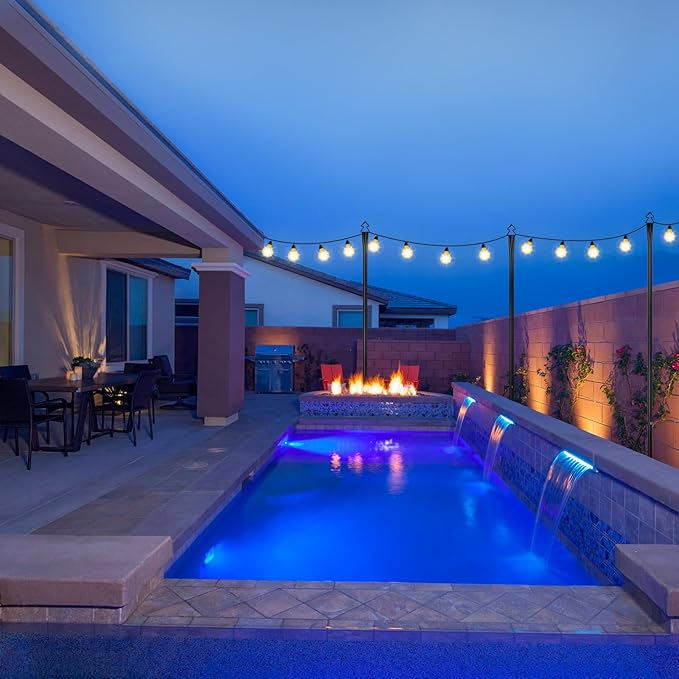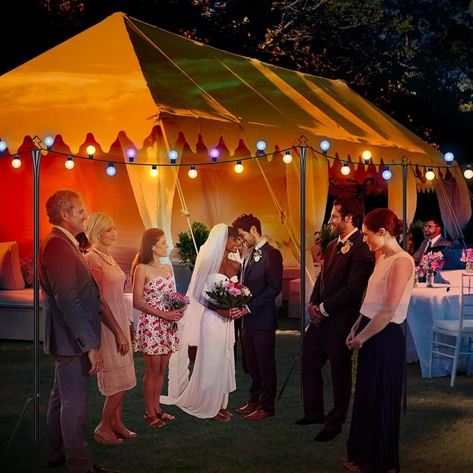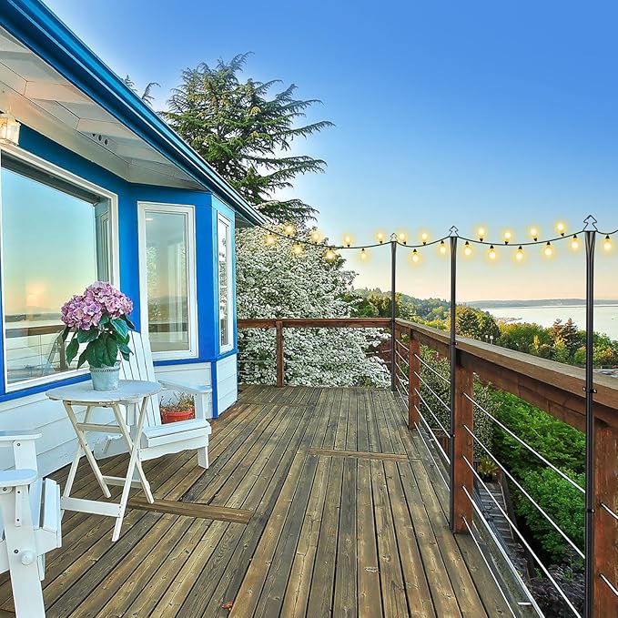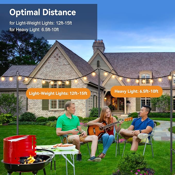 • - String Light Poles for Outside: Transform your outdoor space with our string light poles that illuminate your backyard, balcony, or patio with a warm and inviting ambiance.