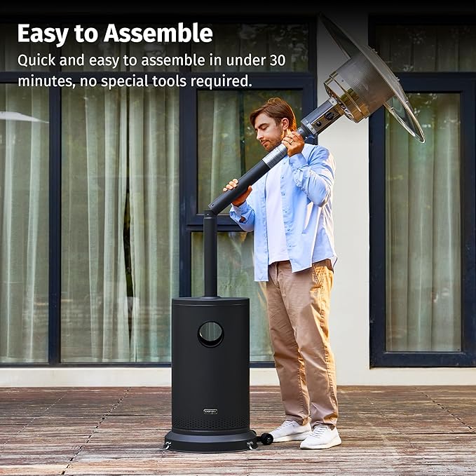 • ๐—ฆ๐—ฎ๐—ณ๐—ฒ๐˜๐˜† ๐—ฃ๐—ฟ๐—ผ๐˜๐—ฒ๐—ฐ๐˜๐—ถ๐—ผ๐—ป ๐—ฆ๐˜†๐˜€๐˜๐—ฒ๐—บ: The Tip-over Protection system will shut off the flame when the patio heater propane is tilted more than 45 degrees. If the flame goes out, the Flame-out Protection system automatically shuts off the gas supply