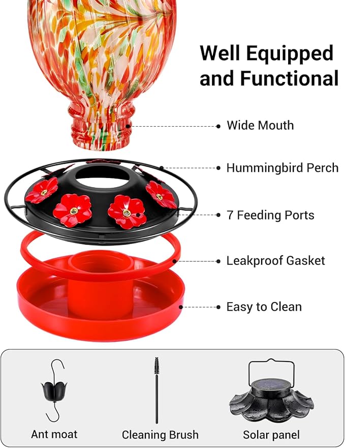 • Hand Blown Glass Artistry: Each glass reservoir is a art piece, handcrafted by skilled artisans using traditional techniques. The exquisite curves and patterns created at temperatures around 4172°F. make each feeder a unique work of art