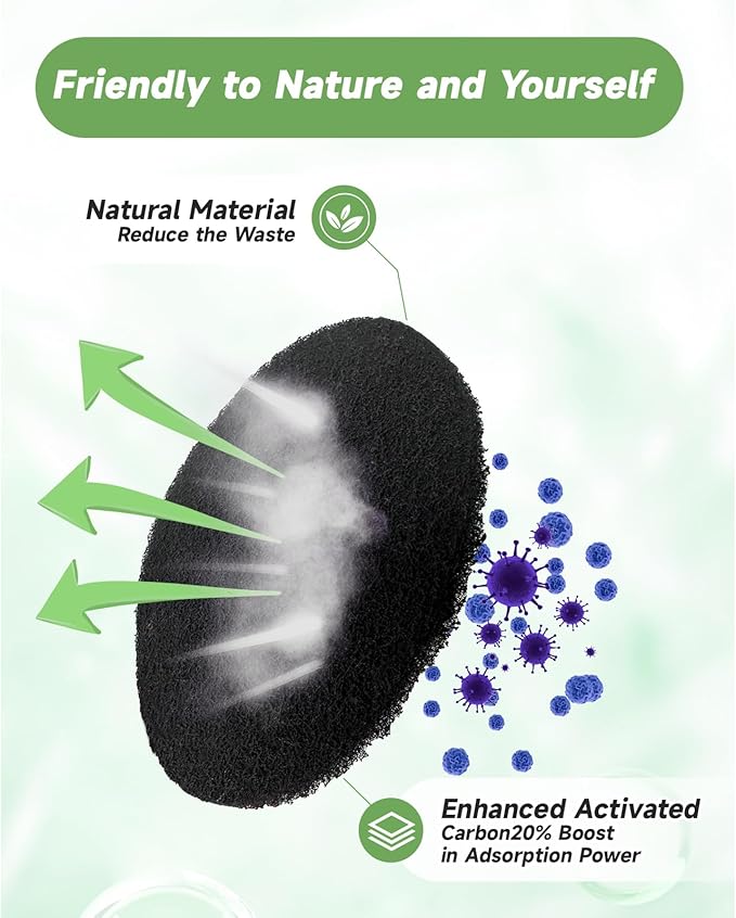 • 【Green-friendly Material】: Made from biomass activated carbon derived from natural materials, each filter is 20% more effective than lesser alternatives, quickly absorbing and neutralizing food odors to ensure fresh and clean indoor air