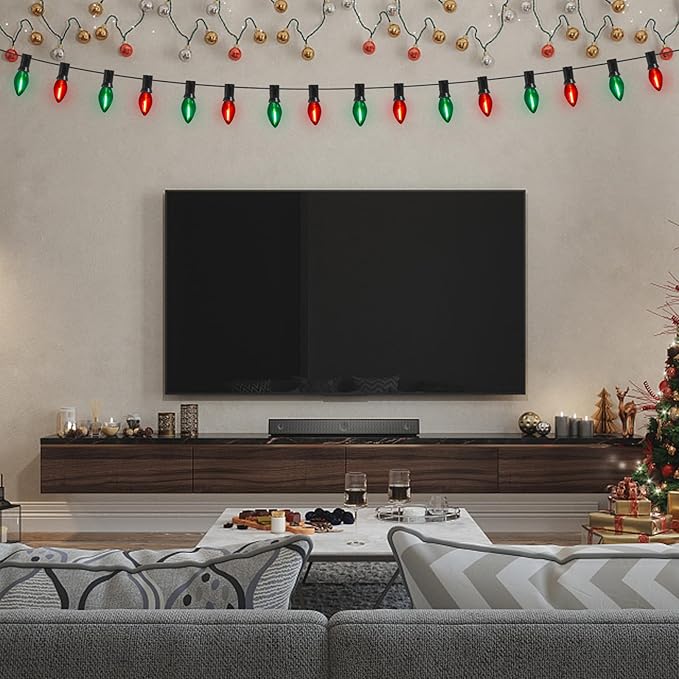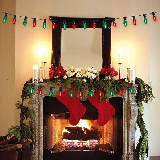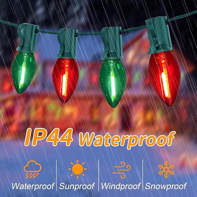 • Old-fashioned Christmas lights: Clear red/green incandescent lights and green lines look more restored to natural and original colors. So its light is soft, which obviously makes our holiday environment comfortable and pleasant. Perfect for decorating your home, Christmas, holidays, winter, shops, backyards, gardens, courtyards, walls, gates, yards, Christmas trees, Windows, parties and every occasion before Christmas.