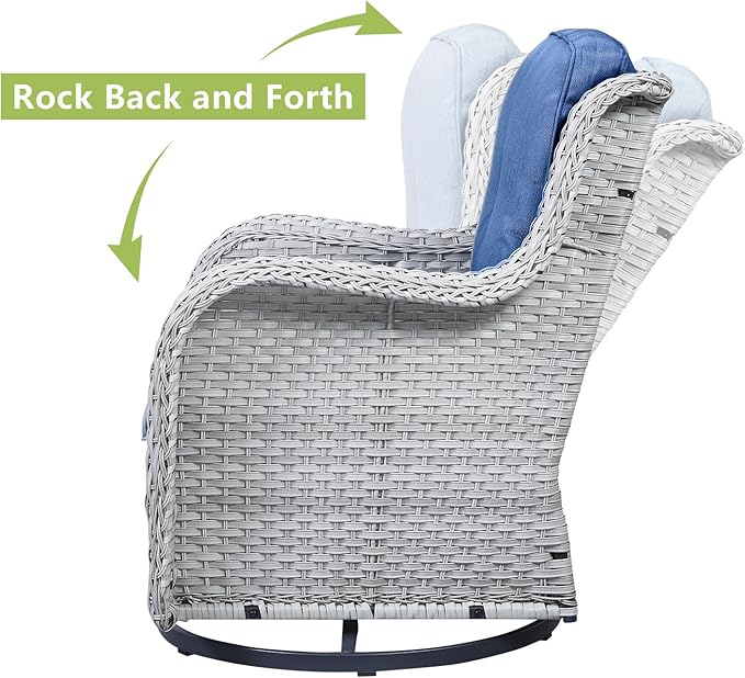 • 【360° SWIVEL AND ROCKING CHAIRS】You can easily turn your face away from the sun without moving the entire chair, or swing your seat like a cradle for the ultimate relaxation while listening to music or watching your children play outside.