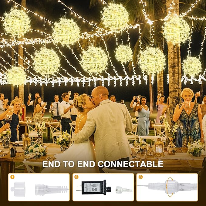 • 【Outdoor Globe Lights with 8 Vibrant Modes】 These hanging globe lights offer 8 distinct lighting modes - combination, wave, sequential, slow glow, chasing/flash, slow fade, twinkle/flash, and steady on. They are the perfect addition to elevate your garden, bistro, balcony, wedding, birthday celebration, Christmas party, or any other special occasion.