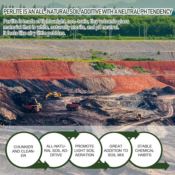 • Excellent Service & Safe Easy to Use: Perlite for plants indoors as an additive for growing media and rooting substrate is easy to pour and mix. Note: Perlite may produce some dust during transportation, please wet and rinse mine before use. Perlite is packed in a clear resealable bag with a capacity of 10 quarts 13.78x17.72 inches. We offer 1 year of free replacement and 3 months of quality assurance. Please rest assured to buy
