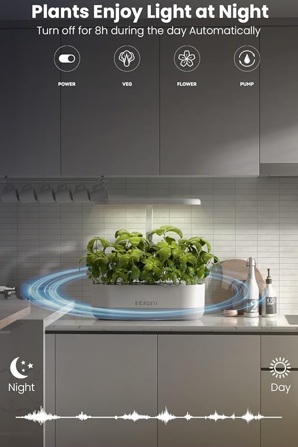 • [4.2L Super-Capacity Water Pump]: With its immense water pump capacity and circulation every 30 minutes, plant roots enjoy full oxygen and nutrient absorption. The large water tank can sustain your plants for 15 days, allowing you to take short trips without worrying about watering.