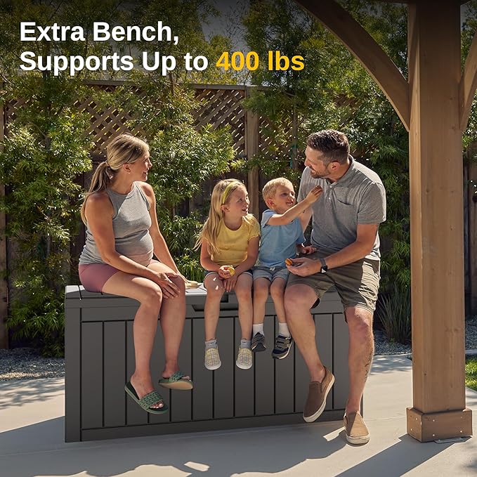 • π—₯𝗒𝗕𝗨𝗦𝗧 & π—¦π—§π—”π—•π—Ÿπ—˜ π——π—˜π—¦π—œπ—šπ—‘: Support up to 400 lbs. Reinforced with metal rods and internal supports, providing 30% more strength. Thicker (0.08") material and precise assembly reduce warping, making the patio storage box more stable