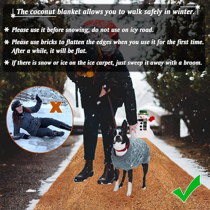 • 🌴【Easy to Use】: When you receive the coconut fiber mat, the coir mat is in roll, so please open the outdoor carpet and lay it on the ground or steps. It is very suitable for the path in the yard, then you can rest assured to walk around the yard to enjoy the snow