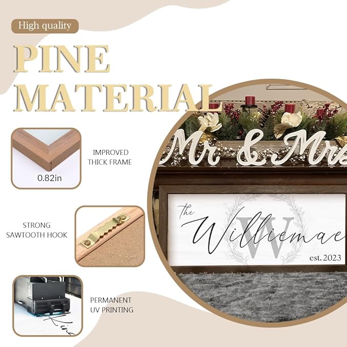 Last Name Signs for Home, Personalized Wall Decor, Monogram Gifts, Framed Wooden Family Name Sign for Home Decor, Custom Wood Signs, Established Signs